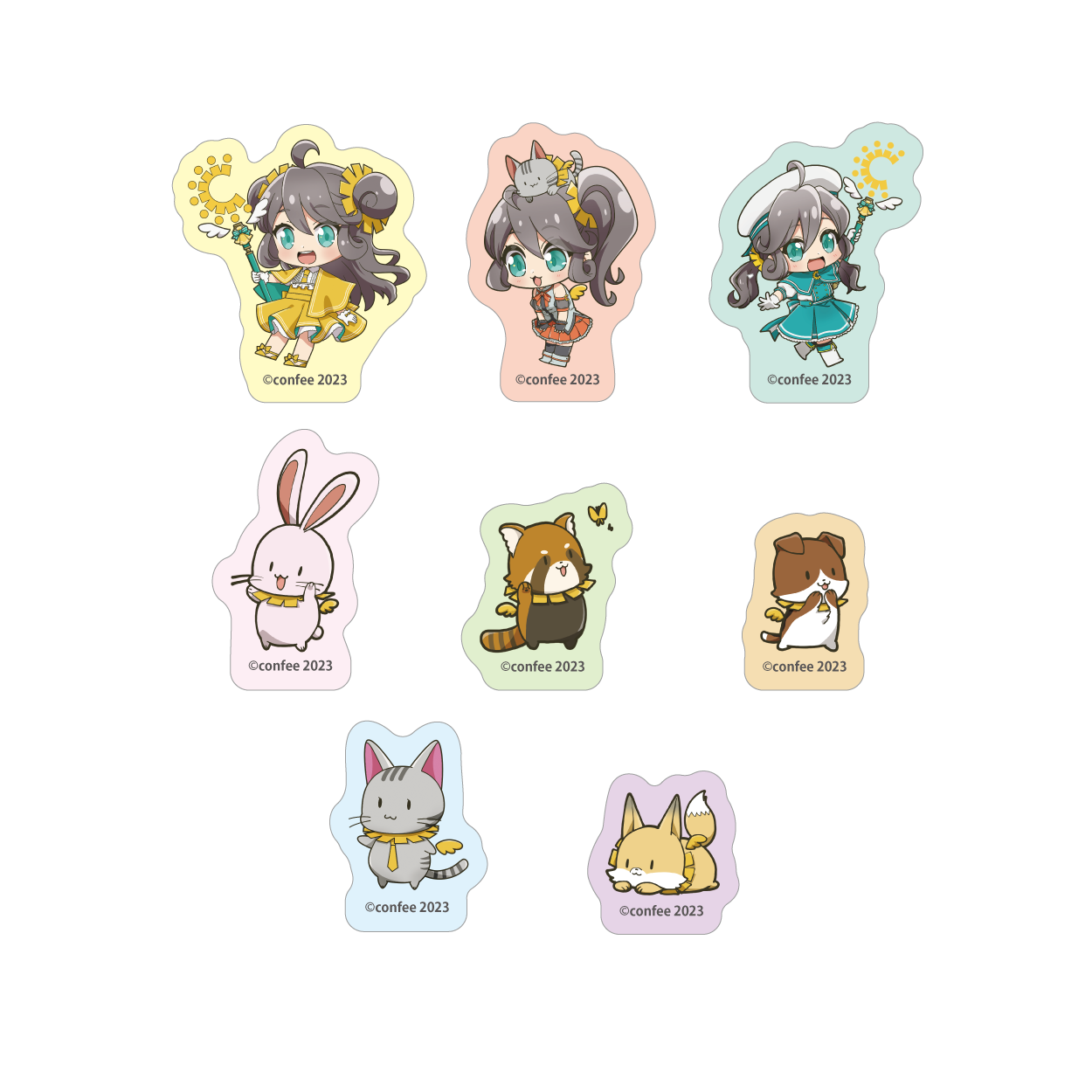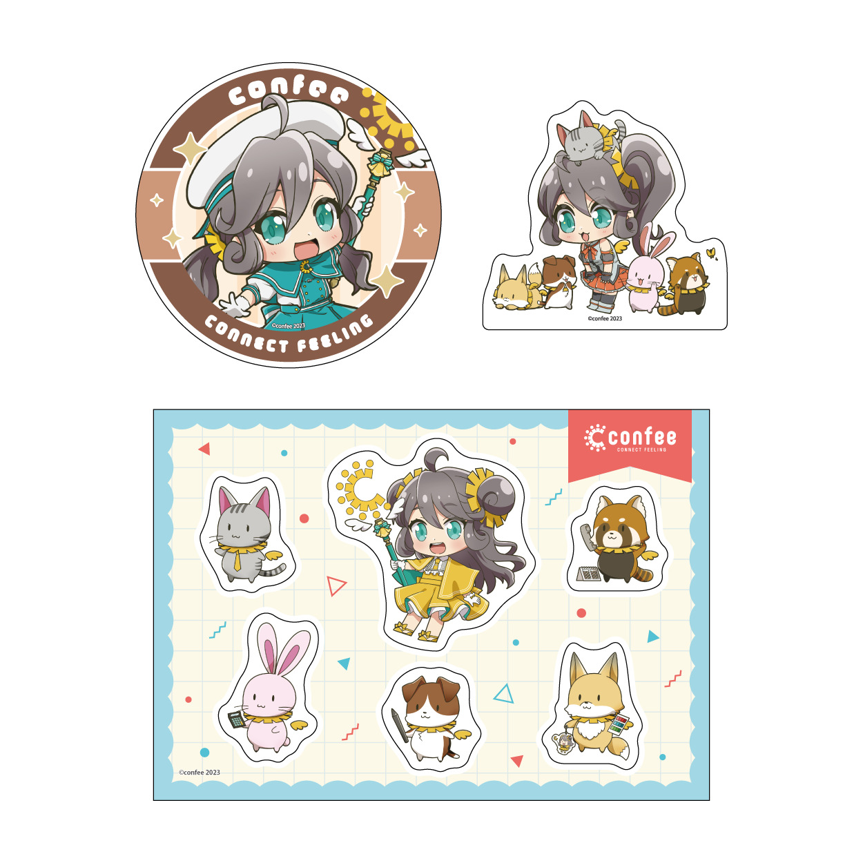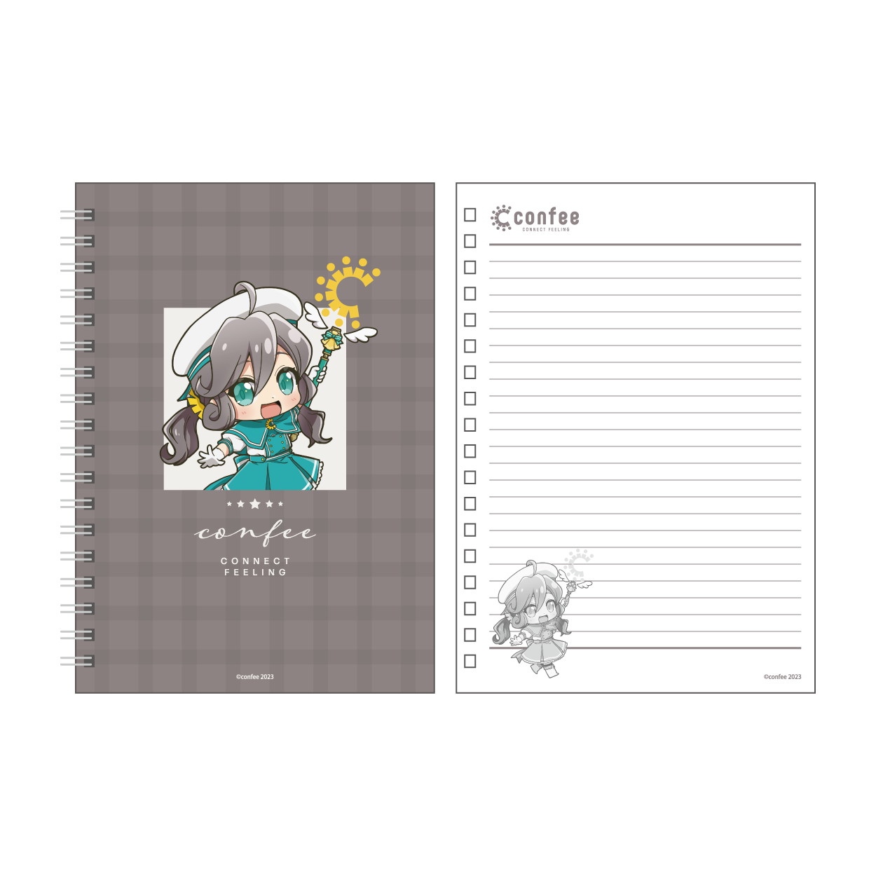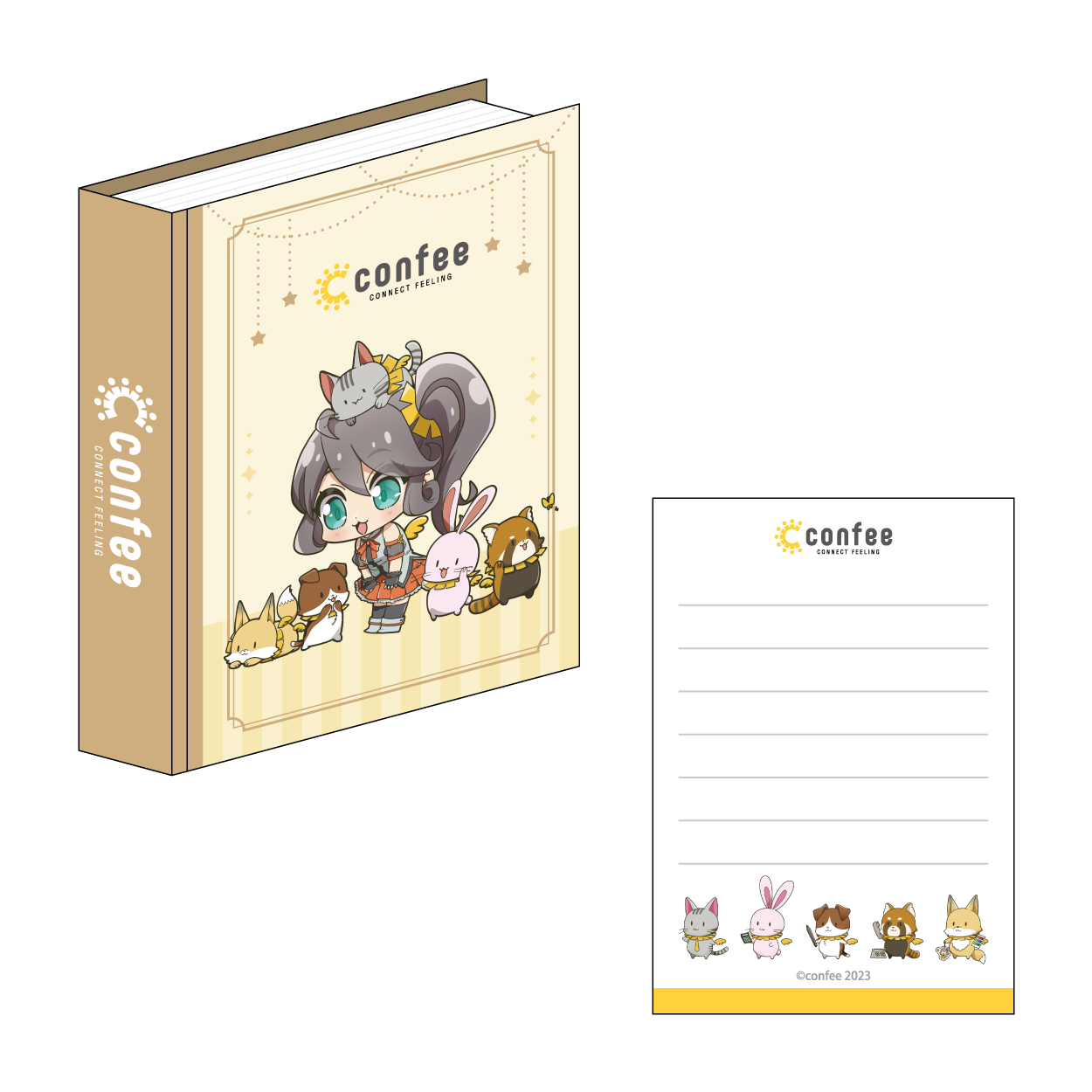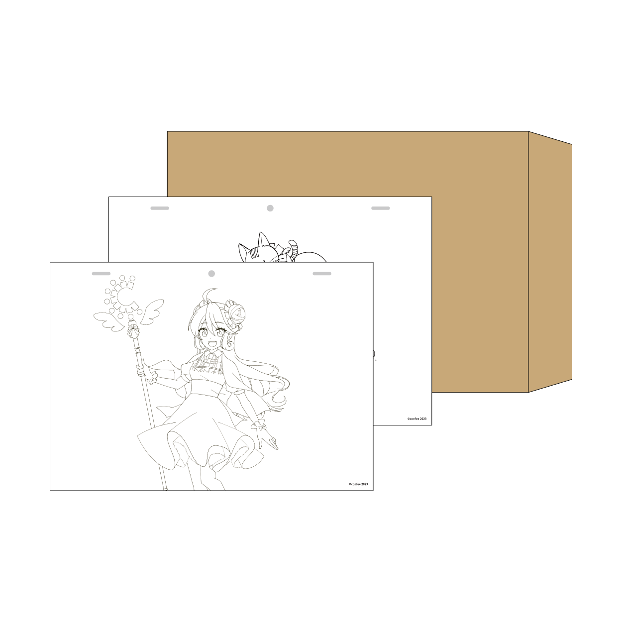 | 紙製品 | ノート、メモ帳、リングノート、冊子、ポスター、ブロマイド、ポストカード、シール、ステッカー、マスキングテープ、色紙、付箋、一筆箋、複製原画、御朱印帳、キャラファイングラフ、パッケージ類、コースター、ブック型メモ帳、フレークシール |